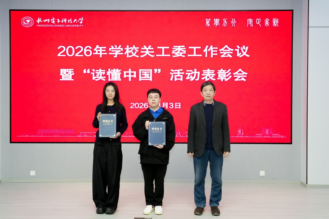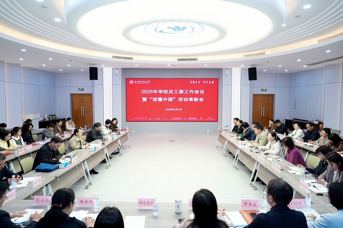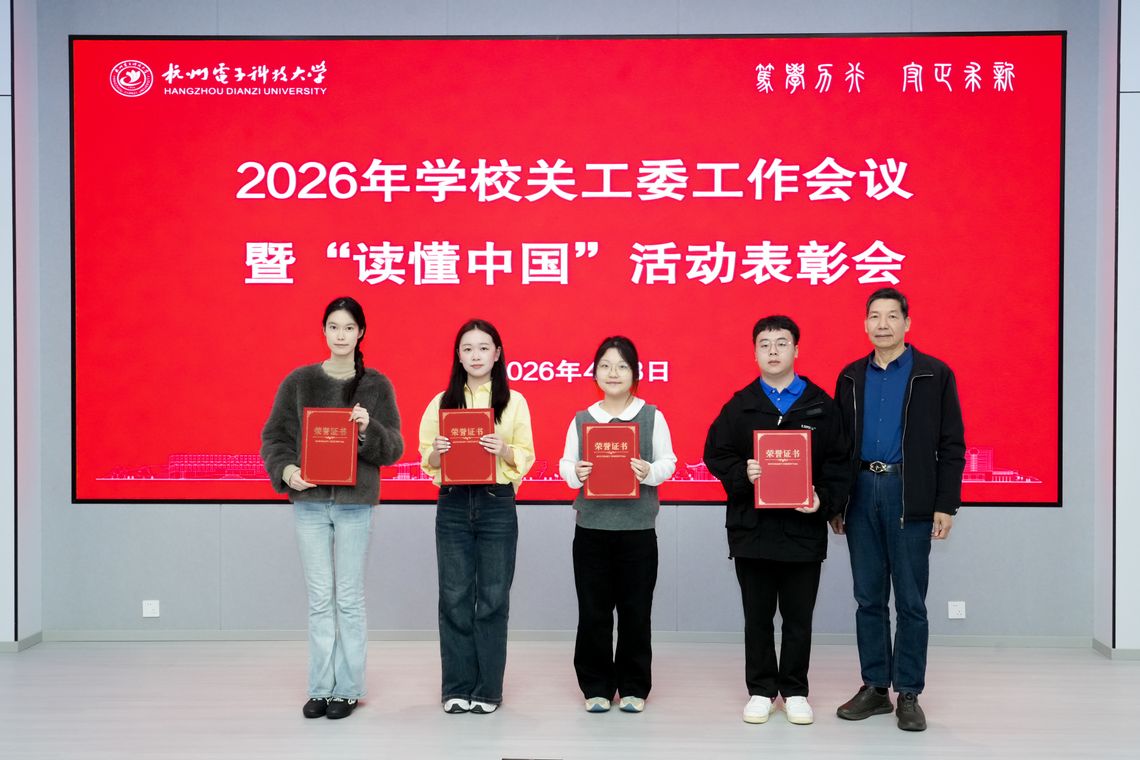 4月3日上午,杭州电子科技大学2026年关工委工作会议暨“读懂中国”活动表彰会在下沙校区科技馆报告厅召开。校党委副书记、关工委主任钱波出席会议并讲话。原校领导、关工委副主任薛晓飞、吕金海,校关工委委员、二级学院关工委主任、“读懂中国”活动获奖师生代表等参加会议。离退休党委书记、离退休工作处处长、关工委秘书长王海南主持会议。